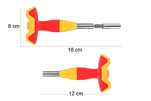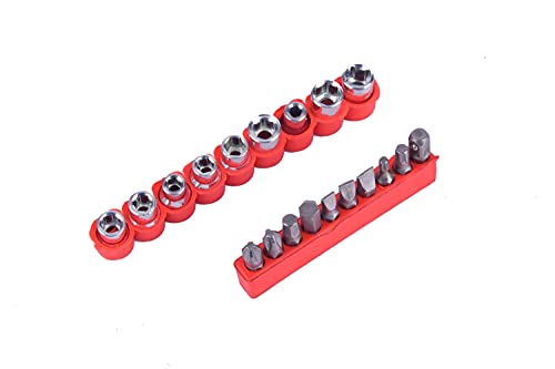 Contents in the pack One T-Bar Sockets (Sizes: 5mm – 13mm) Screwdriver Bits (Sizes: 3mm- 8mm) which comprise of: 5 flat(-) type screwdriver bits.