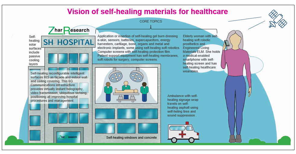 Vision of self-healing materials for healthcare. Source, Zhar Research report, ““Self-Healing Engineering Materials, Markets, Technology 2024-2044”. www.zharresearch.com