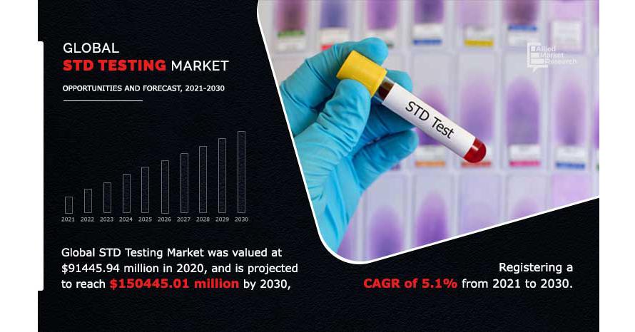 PORTLAND, OREGON, UNITED STATES, May 30, 2023/EINPresswire.com/ — Sexually transmitted diseases (STDs) are infections that are spread through sexual contact, and they can have serious health consequences if left untreated. Testing for STDs is an important part of sexual health and can help individuals to receive timely treatment, avoid spreading infections to others, and prevent long-term health complications. The STD testing market size accounted for $91,445.93 Million in 2020, and is expected to reach $1,50,445.01 Million by 2030, registering a CAGR of 5.1% from 2021 to 2030.