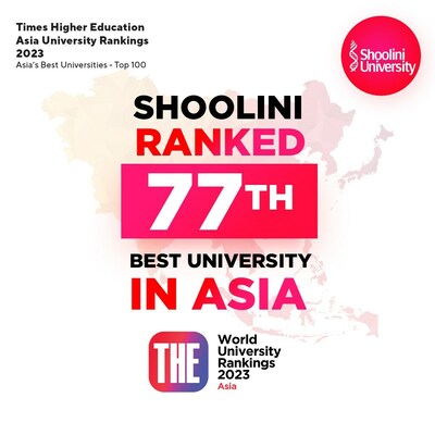 SOLAN, India, June 23, 2023 /PRNewswire/ — Continuing its winning streak, Shoolini University has emerged as the 77th Best University in Asia and the third-best in India. The rankings were declared by the prestigious Times Higher Education (THE) Asia Rankings, highly regarded and considered a significant benchmark for academic excellence and institutional reputation.