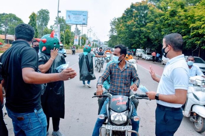 Since the lifting of the lockdown people have become careless in wearing masks and following other health safety norms in public places. Keeping this in mind Courtyard by Marriott, Raipur in association with District TrafficPolice organised a unique awareness campaign ‘Khatra Abhi Tala Nahi Hai’ (the danger is not yet over) today at Bhagat Singh Chowk.