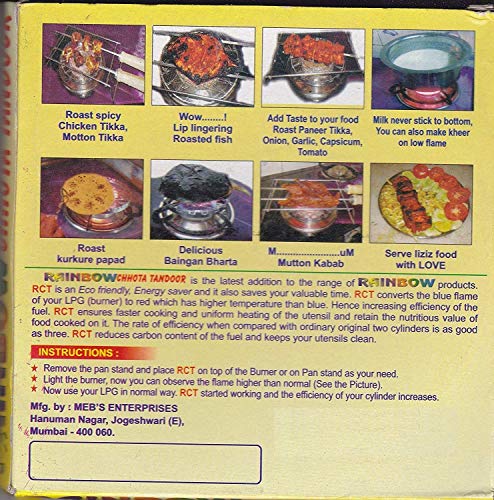 Great for roasting papads, chicken, prawns and more. Easily fits on to your gas hob burner. Save gas – saves energy and lets you cook faster. Material: stainless steel 202, non-magnetic ; evenly flame. Dishwasher safe , easy to maintain.