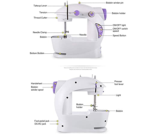 Mini sewing machine for home with double threads, with two speed control, sew the sleeves easily