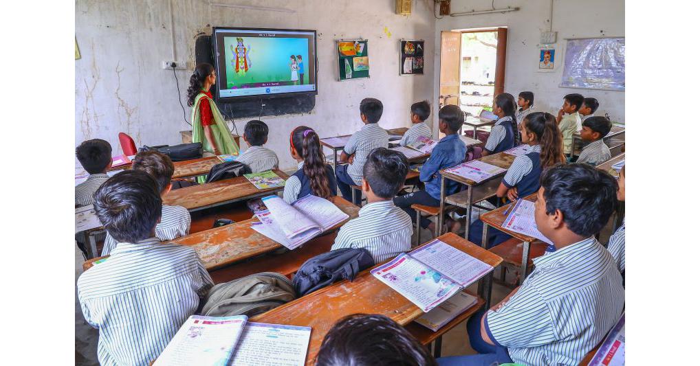An India primary teacher conducts a digital classroom