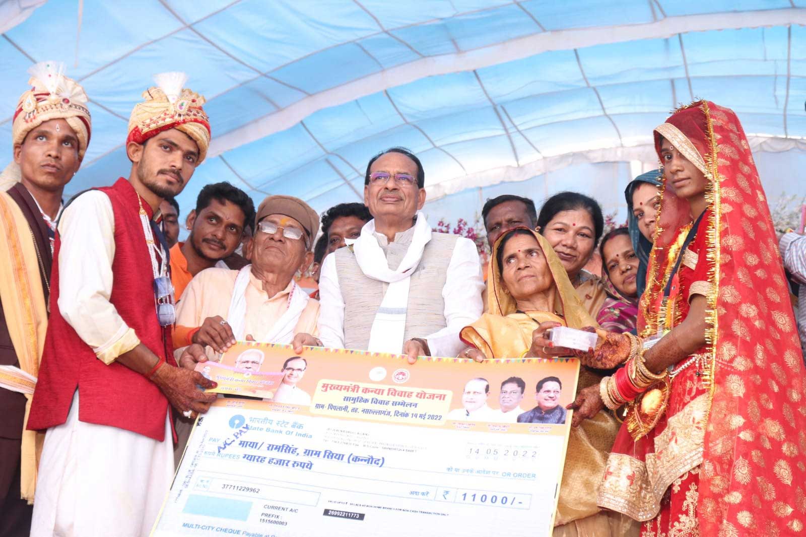 Chief Minister Shivraj Singh Chouhan has said that the state government is committed for the upliftment of the tribal class. There are continuous efforts of government to connect the tribal society with the mainstream of development. The way for their development is being paved through many schemes. The government is also doing the work of preserving tribal language and culture. Chief Minister Shri Chouhan was addressing the mass marriage ceremony of Gond and Korku couples under Mukhyamantri Kanya Vivah Yojna at Piplani, a tribal-dominated village of Sehore district. He said that he does not want to be welcomed in the marriage of daughters, I have come to welcome the bride and groom and my sons and daughters. Chief Minister Shri Chouhan welcomed the bride and groom by showering flowers in the mass marriage programme and blessed them.