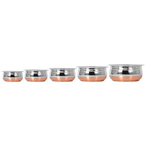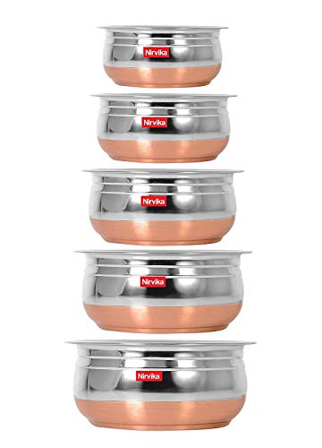 Nirvika Stainless Steel copper Bottom Punjai Handi:- The Handi is made of good quality materials which sure to add to its durability. It is highly stable and can stand strong.