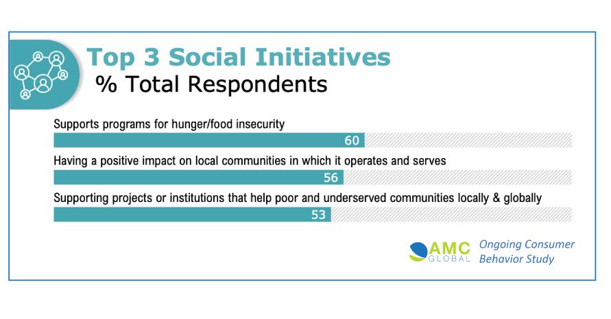 – Consumers’ prime Social initiatives for company monetary/involvement help are: supporting packages for starvation and meals insecurity (60%), having a optimistic impression on native communities (56%), and supporting initiatives that assist poor/underserved communities domestically and globally (53%).