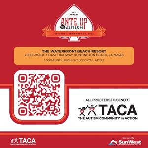 LOS ANGELES, Sept. 22, 2022 (GLOBE NEWSWIRE) — On Saturday, Sept. 24, from 5:30 p.m. till midnight The Autism Community in Action (TACA) shall be internet hosting its 16th Annual Ante Up Autism Fundraising Event at The Waterfront Beach Resort 21100 Pacific Coast Highway, Huntington Beach, CA 92648