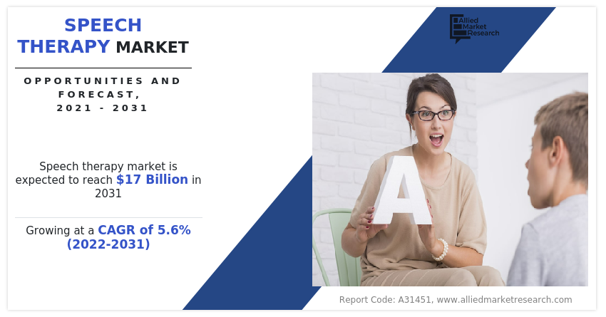 The speech therapy market size was valued at USD 9.9 billion in 2021, and is estimated to reach $17 billion by 2031, growing at a CAGR of 5.6% from 2022 to 2031.