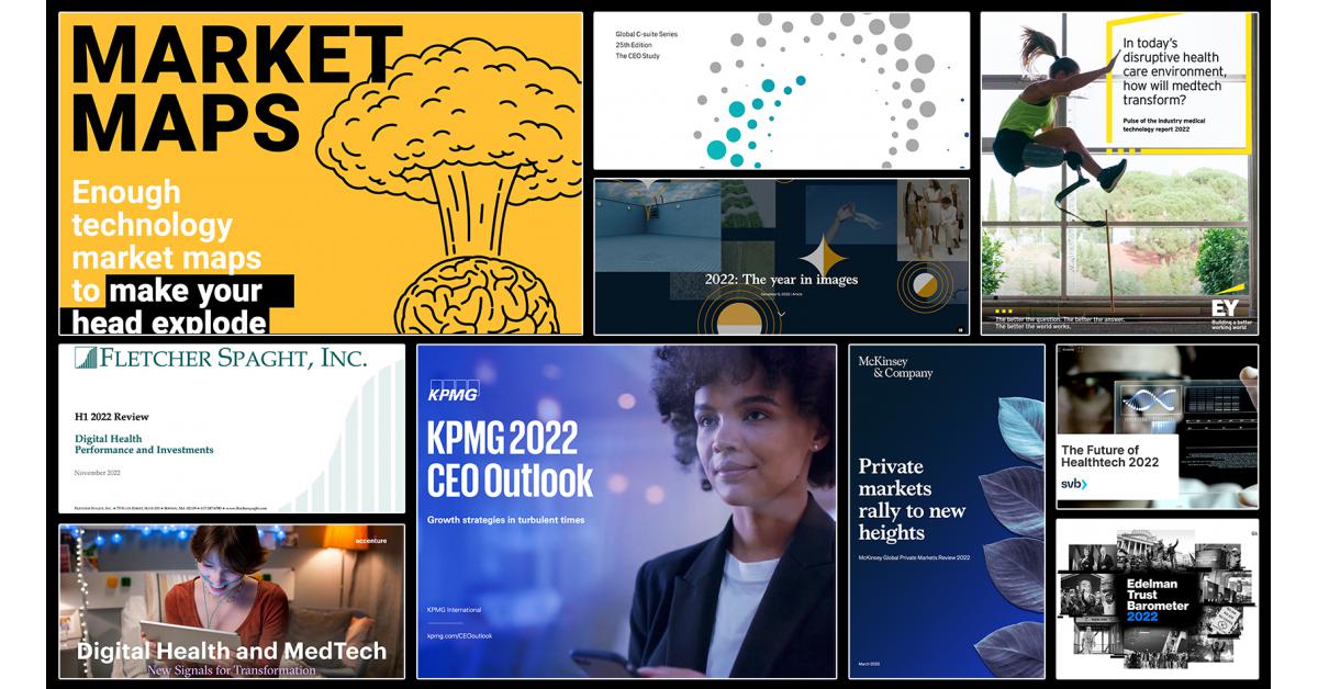 MINNEAPOLIS, MINNESOTA, UNITED STATES, January 11, 2023 /EINPresswire.com/ — With over 8,000 attendees representing 550 healthcare companies gathering this week in San Francisco for the annual 41st J.P. Morgan Healthcare Conference, CEOs will be networking and learning about the latest forces and trends transforming the healthtech industry. As they seek the insights to provide their firms a competitive advantage, healthcare CEOs will want to tap into a list of the top industry research and reports created in the last year by firms such as EY, KPMG, McKinsey, CB Insights, Accenture, SVB, Pitchbook and others. They can find this new list of free reports at Top Reports for Healthcare CEOs in 2023.