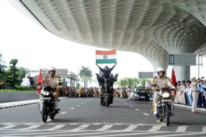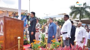 Gaurav Gupta, Additional Chief Secretary – Commerce & Industries, Government of Karnataka (centre of top photo) joined the Independence Day celebrations at Bangalore International Airport today.