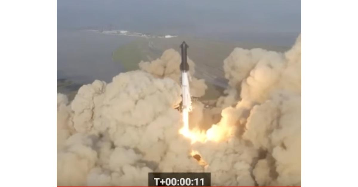 Launch of today’s partially successful test flight of Starship. Credit: SpaceX