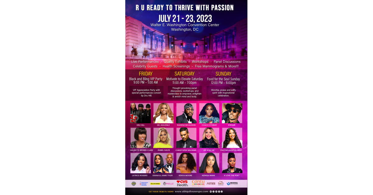 WASHINGTON, DC, UNITED STATES, June 23, 2023/EINPresswire.com/ — Celebrate and be inspired to thrive at THE 9TH ANNUAL UBIQUITOUS WOMEN’S EXPO on July 21-23 at The Walter E. Washington Convention Center in Downtown, DC. The two-day boasts new energy and the opportunity to flourish with interactive activities to revitalize your mind, body and soul.