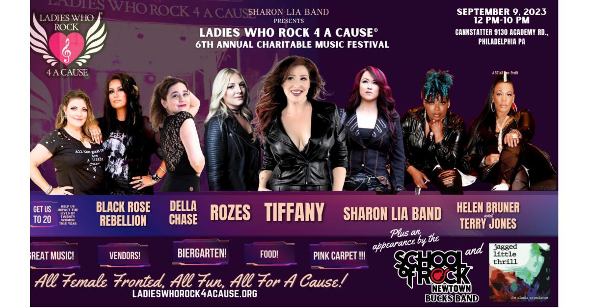 The 2023 Ladies Who Rock 4 A Cause® Music Festival will showcase performances by artists including Tiffany, ROZES, Sharon Lia Band, and others, promising an all-female-fronted, purpose-driven event.
