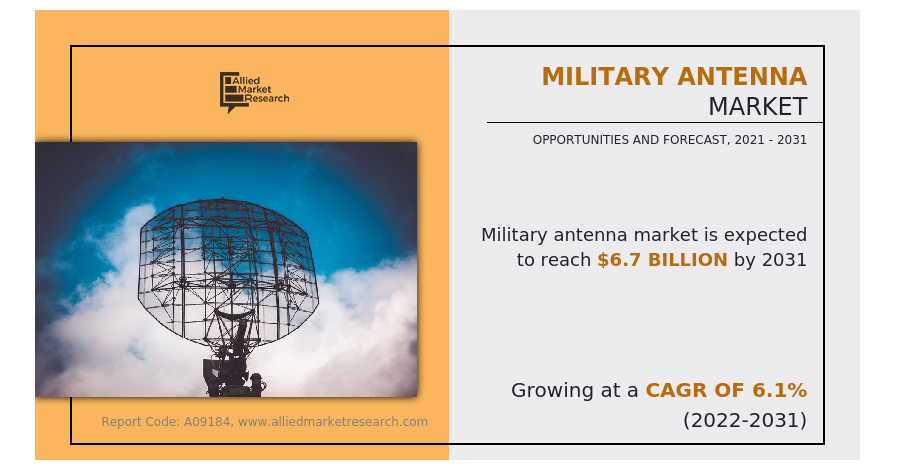 OREGAON, PORTLAND, UNITED STATES, May 11, 2023 /EINPresswire.com/ — According to a new report published by Allied Market Research, titled, “Military Antenna Market,” The military antenna market was valued at $3.7 billion in 2021, and is estimated to reach $6.7 billion by 2031, growing at a CAGR of 6.1% from 2022 to 2031.