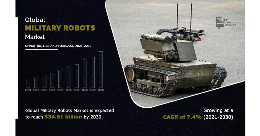 PORTLAND, OR, UNITED STATES, April 28, 2023 /EINPresswire.com/ — According to a recent report published by Allied Market Research, titled, “Military robots Market by Application, Mode of Operation, and Platform: Global Opportunity Analysis and Industry Forecast, 2021–2030,” the military robots market was valued at $17.55 billion in 2020, and is projected to reach $34.61 billion by 2030, registering a CAGR of 7.4%.