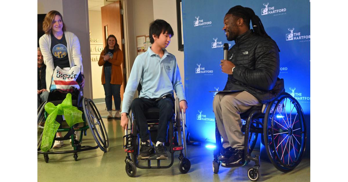The Hartford and champion wheelchair basketball player Matt Scott surprise local youth athletes with custom-fit sports equipment