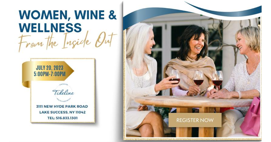 LAKE SUCCESS, NY, USA, July 11, 2023/EINPresswire.com/ — – Tideline Center for Health & Aesthetics is excited to announce its upcoming event, Women, Wine & Wellness: From the Inside Out, on July 20th, 2023 from 5:00pm-7:00pm. Join them for a fun and educational evening with wine, champagne, & appetizers! Connect with a community of women physicians and wellness professionals to learn about healthy lifestyle, wellness, and sexual health.
