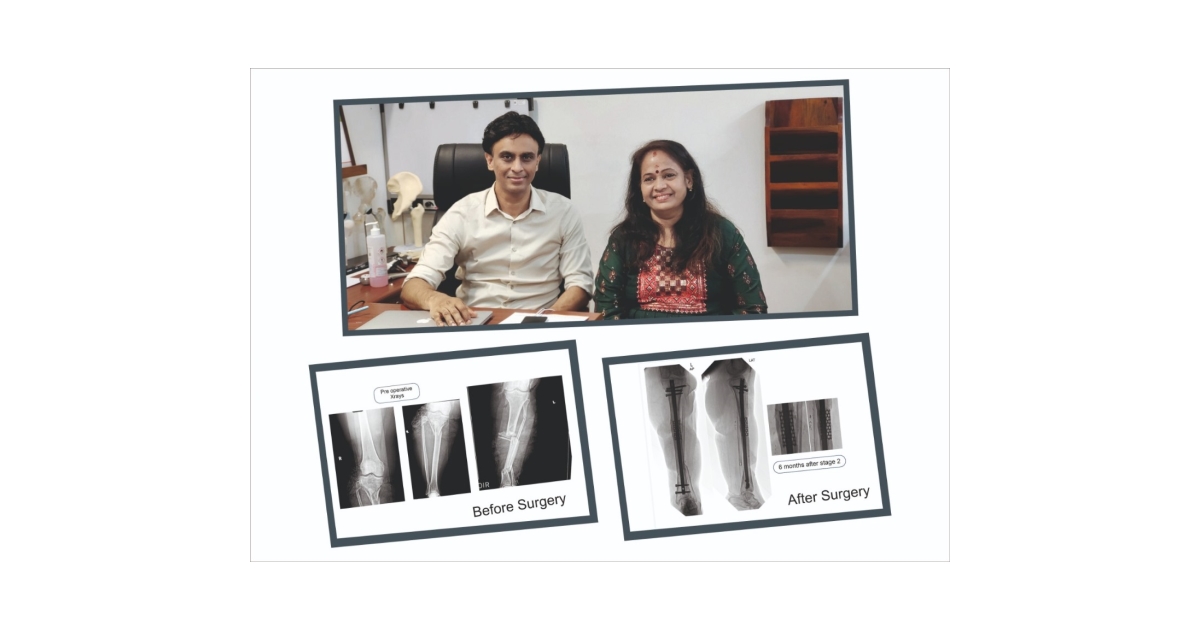 Dr. Ashok Sunil Gavaskar assessed the situation and assured Mrs.Valli Ammal that although it would be a lengthy process, he could help her walk again after completing the necessary procedures. The journey was tough and required multiple surgeries (around 19 surgeries) over a period of approximately three years. Initially, they focused on healing her right lower limb, successfully eradicating infections and achieving bony union through a combination of bony and soft tissue procedures.