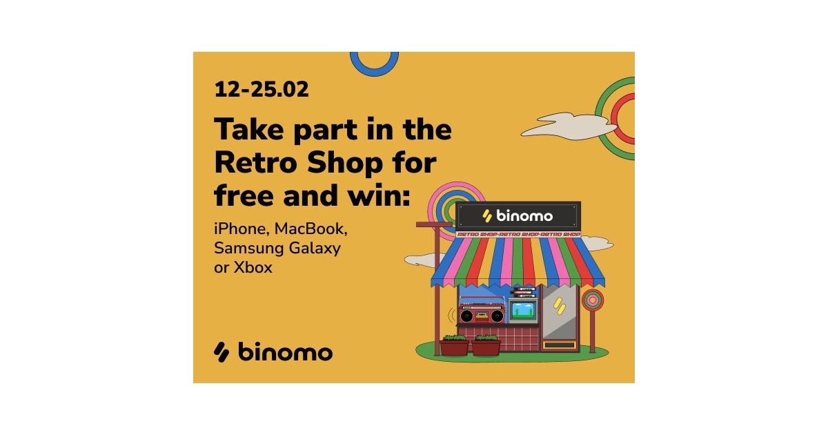 Binomo invites everyone to a cozy shop filled with various items from the past — Retro Shop. Play the arcade machine and get guaranteed prizes. Also, each participant can win a big prize, such as an iPhone 15, in the final drawing.