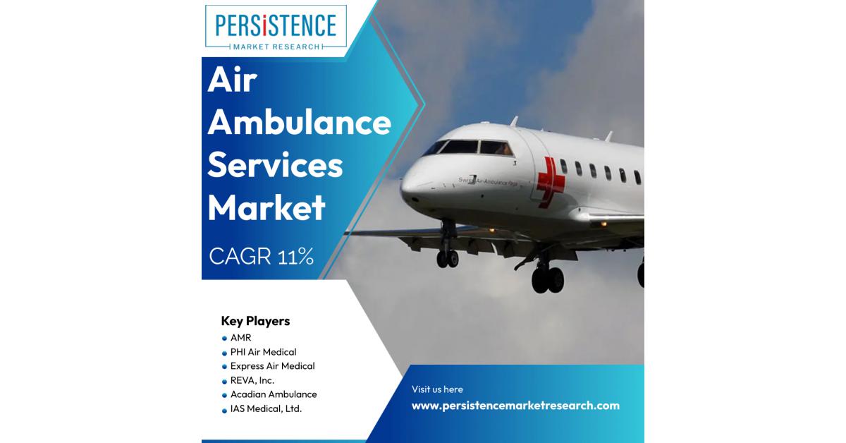 NEW YORK CITY, NEW YORK , UNITED STATES, March 13, 2023 /EINPresswire.com/ — The global Air Ambulance Services market accounts for a revenue of US$ 17.76 billion in 2022. The global market for Air Ambulance Services is expected to reach 𝐔𝐒$ 𝟓𝟎.𝟒𝟑 𝐛𝐢𝐥𝐥𝐢𝐨𝐧 by 2032 and Demand for Air Ambulance Services from 2022 to 2032 is projected to expand at a stellar 𝐂𝐀𝐆𝐑 𝐨𝐟 𝟏𝟏%.