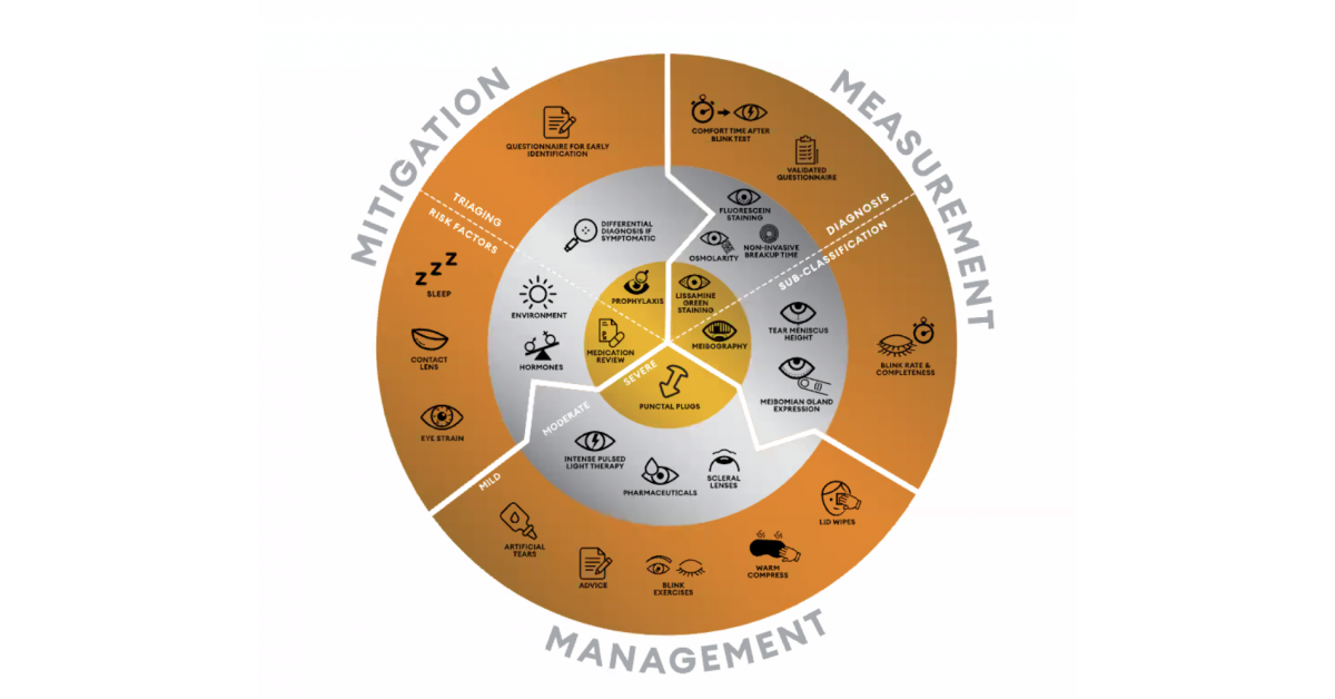 Aston University (UK) School of Optometry and Audiology Head James Wolffsohn, BSc, MBA, Ph.D., FCOptom, FAAO said, “As a duty of care, we need to manage our patients’ dry eye disease at whatever level we’re able to, keeping in mind that only a small number of patients will need the highest level of practice. Building networks to be able to refer them if they need more specialized care is also important. A standardized diagnosis based on both signs and symptoms is critical, and can easily be made by all eye care practitioners.”