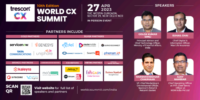 Wednesday, April 26, 2023: The 10th Global Edition of the World CX Summit, organized by Trescon, is set to take place on 27 April 2023 at The Westin Gurgaon, New Delhi – NCR. The summit will highlight the outstanding accomplishments of India’s foremost CX leaders and innovators, Heads of CX, and Chief Digital Officers by providing a forum to share their engaging experiences and valuable insights. The CX leaders will unveil the latest developments in the customer journey experience and reveal the key factors behind their success, paving the way for new opportunities in the future.