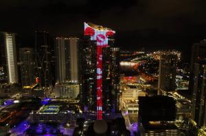 MIAMI, FL, UNITED STATES, February 12, 2023 /EINPresswire.com/ — The World’s Tallest Digital “Happy Valentine’s Day” Greeting, the World’s Largest L.E.D. Kissing Lips, the World’s Most-Enormous Electronic Hearts and Colossal Flying Cupids, are lighting-up the South Florida skyline at the 60-story Paramount Miami Worldcenter skyscraper, in downtown Miami.